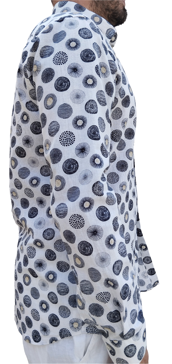 Linen/Cotton Print, Regular Fit and under collar buttons