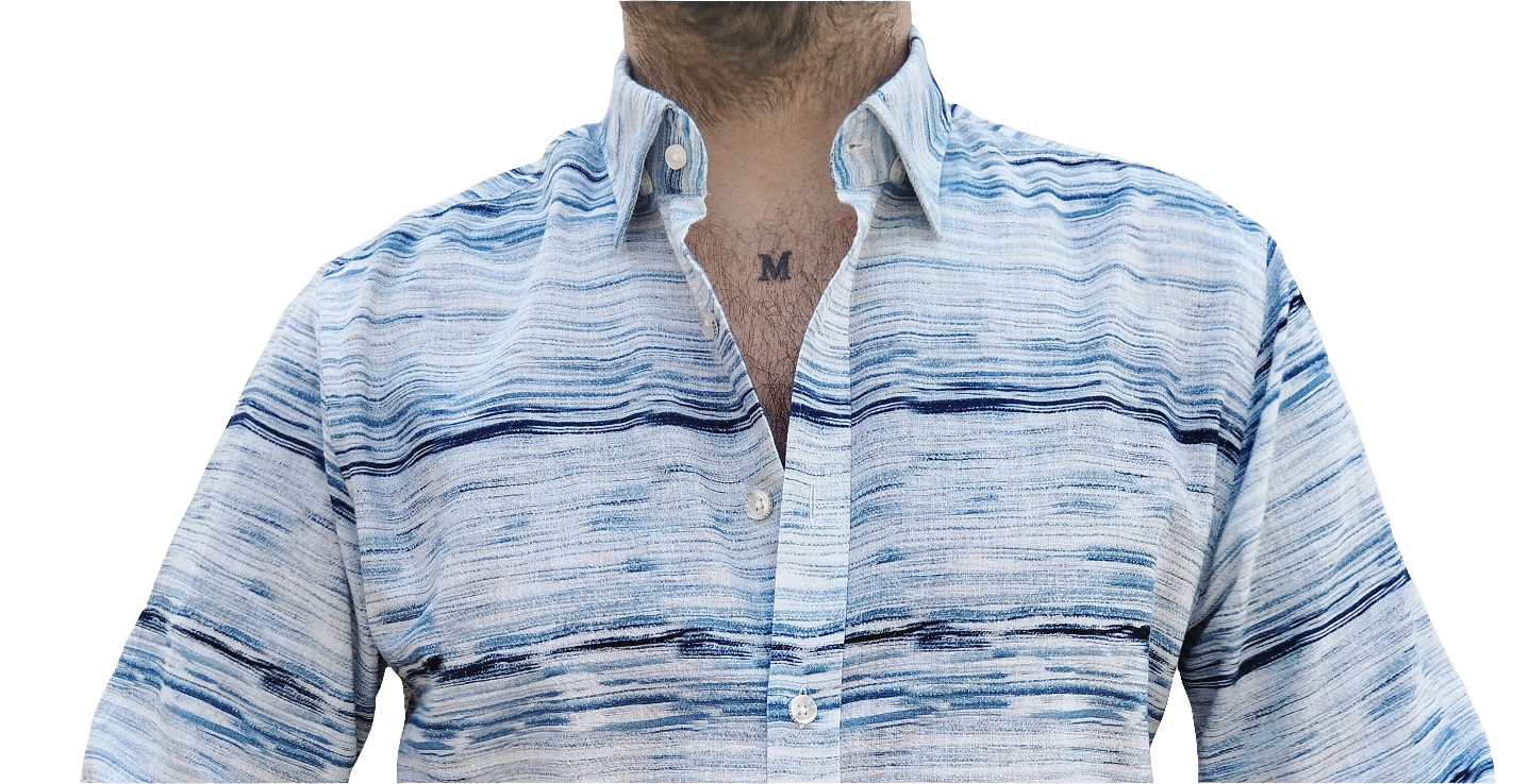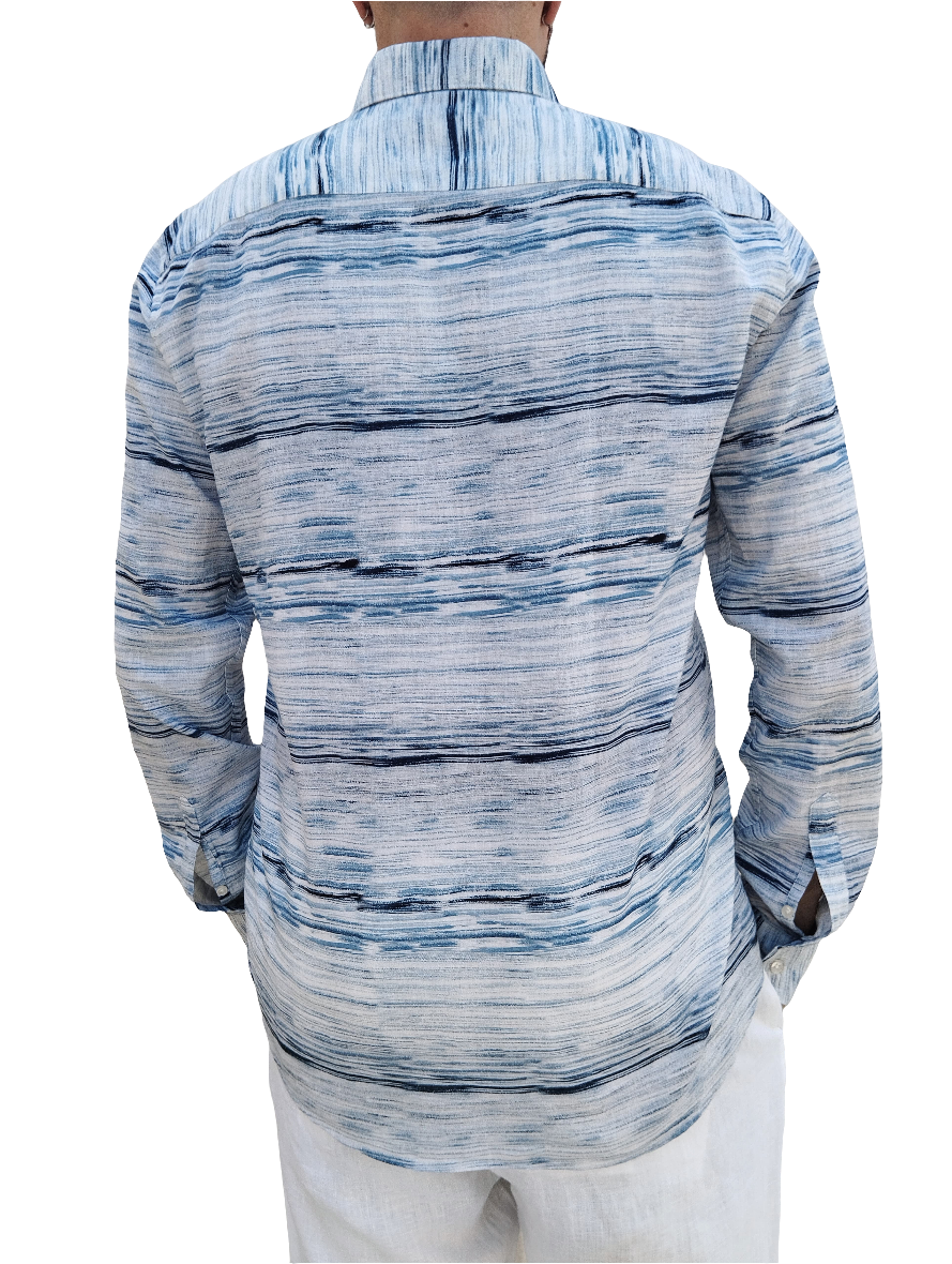 Linen/Cotton Print, Regular Fit and under collar buttons