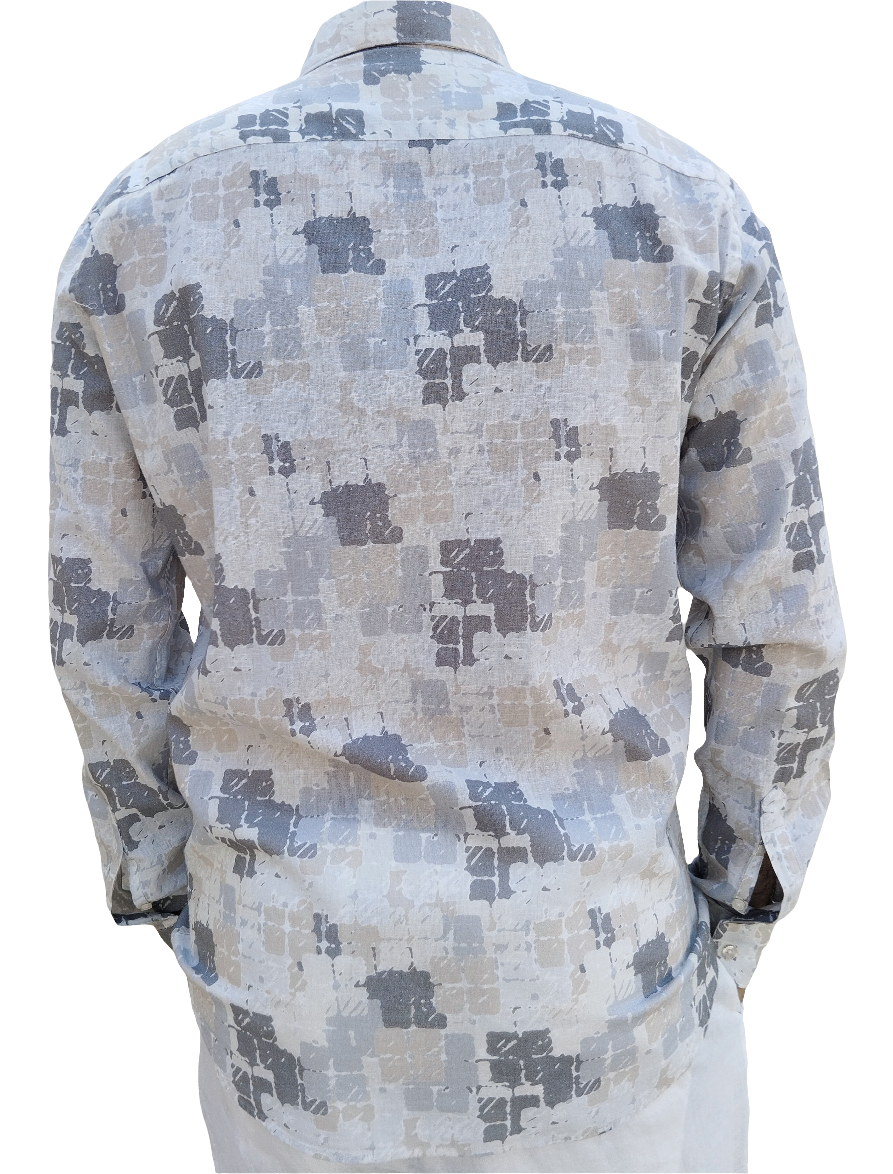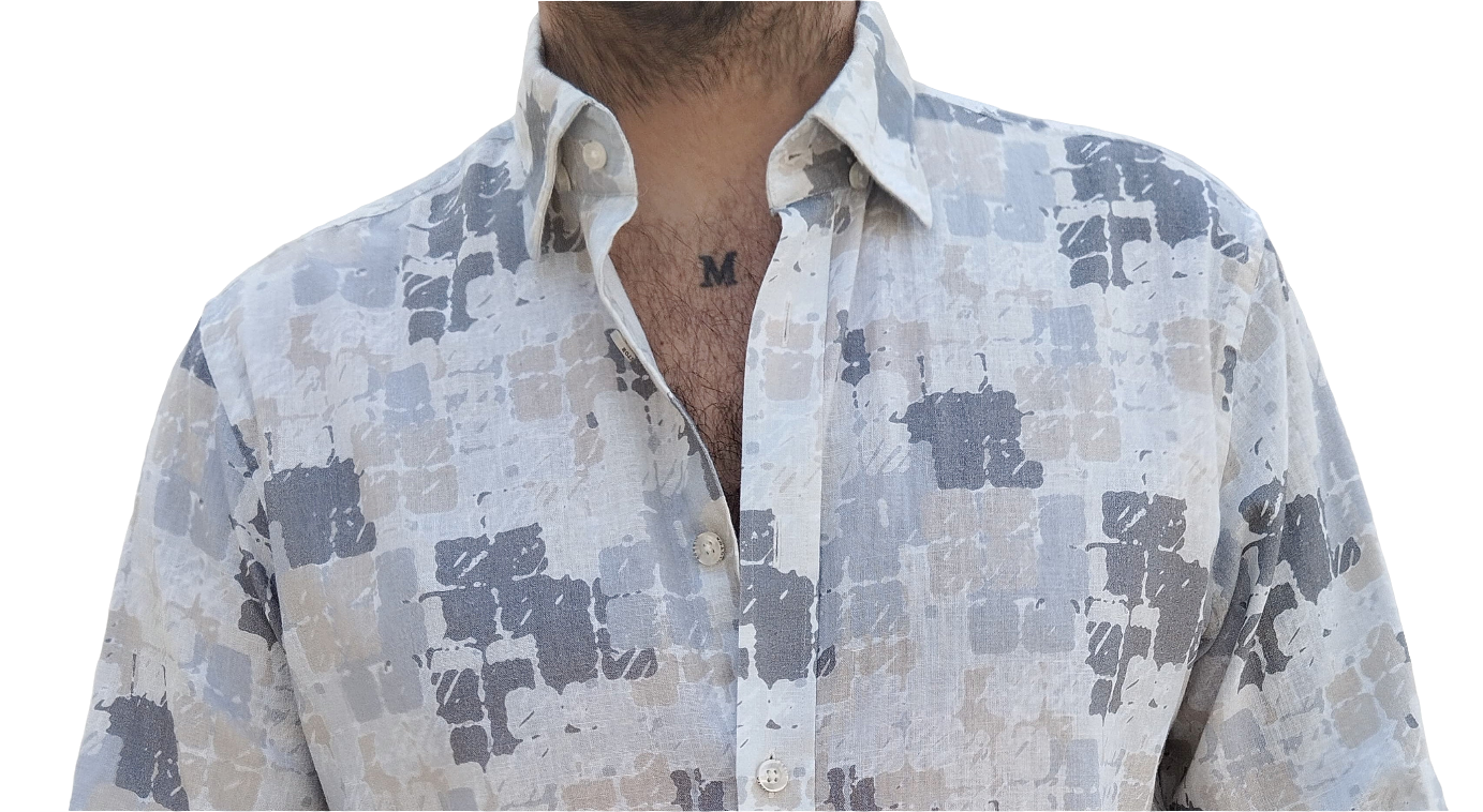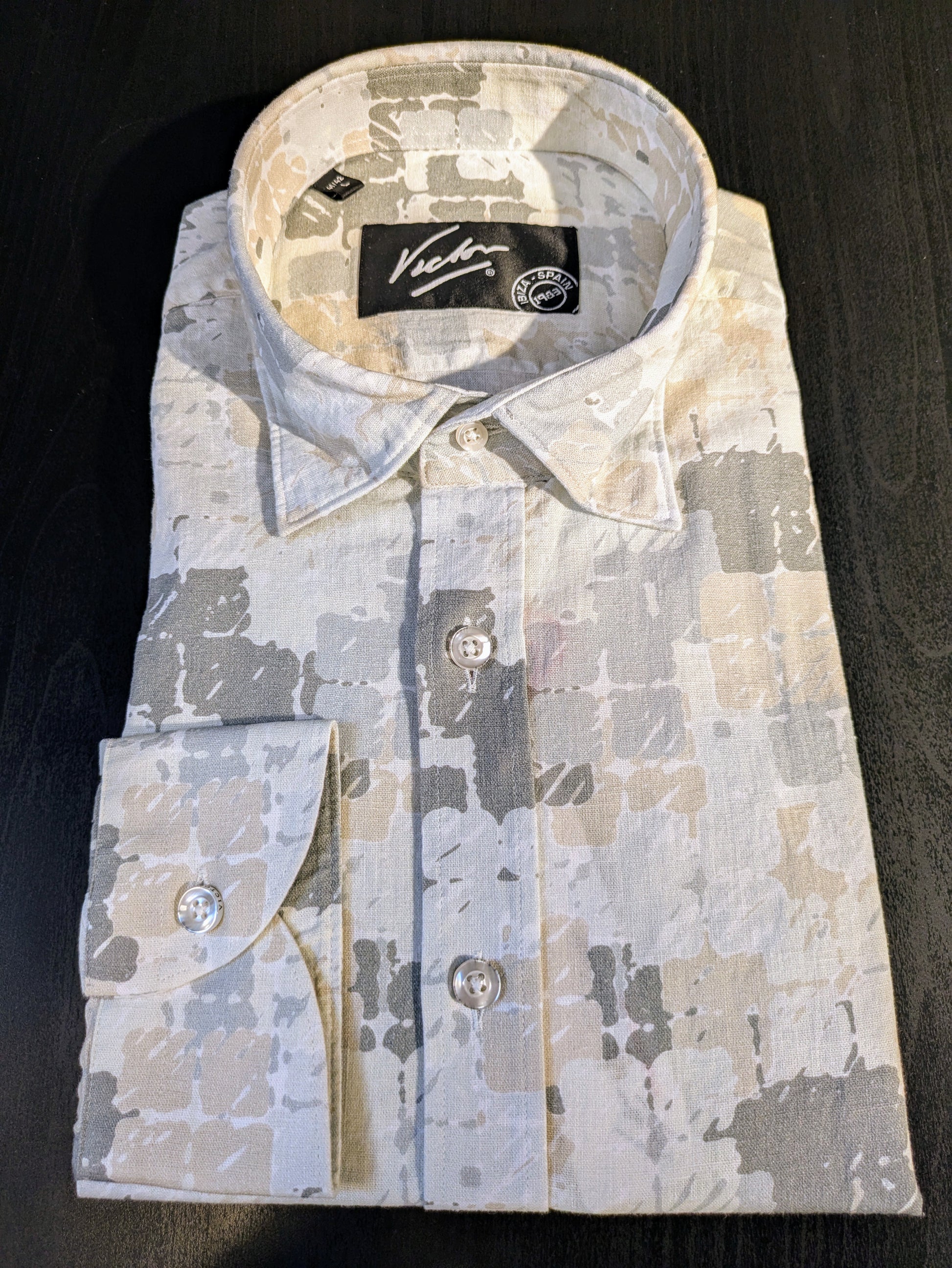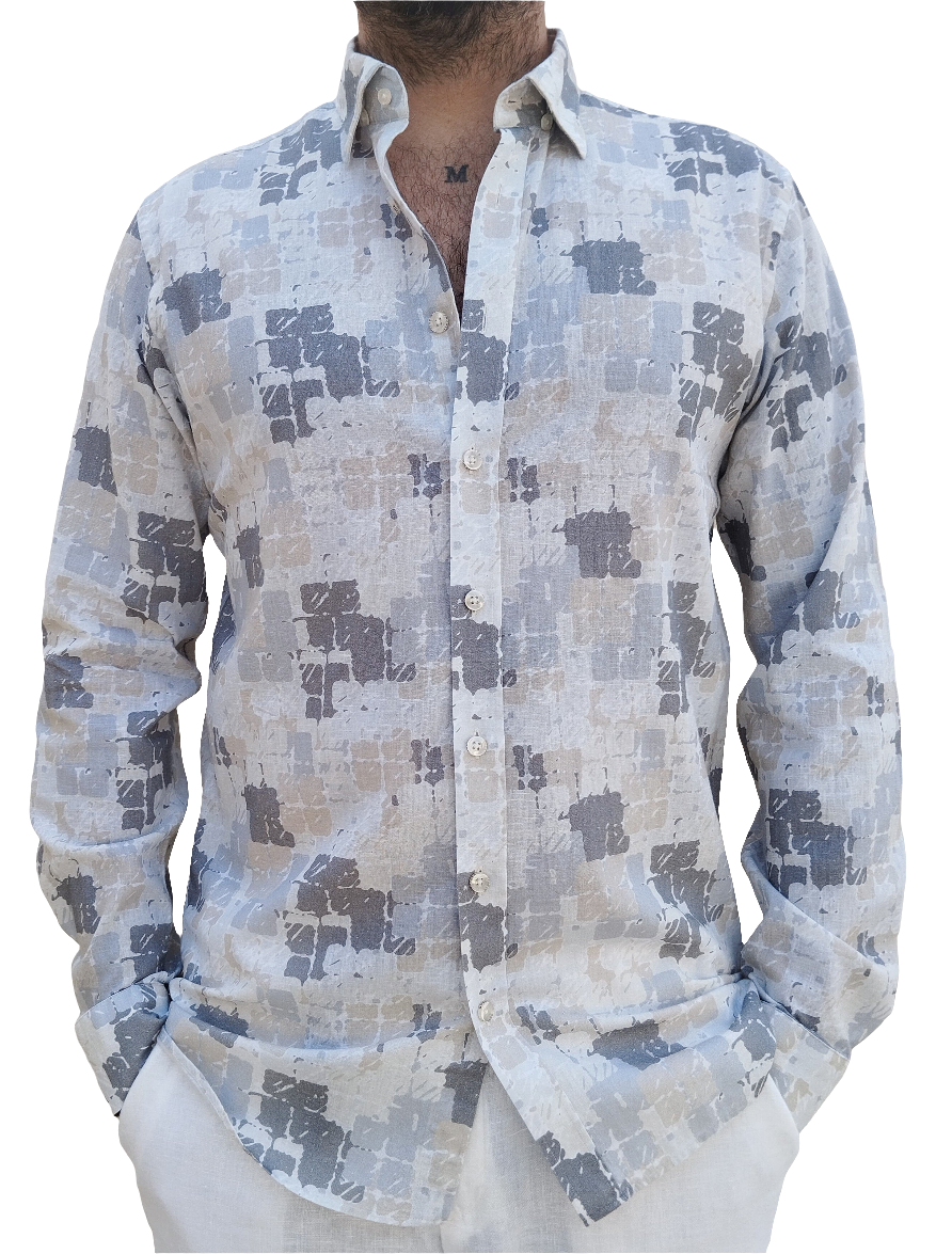 Linen/Cotton Print, Regular Fit and under collar buttons