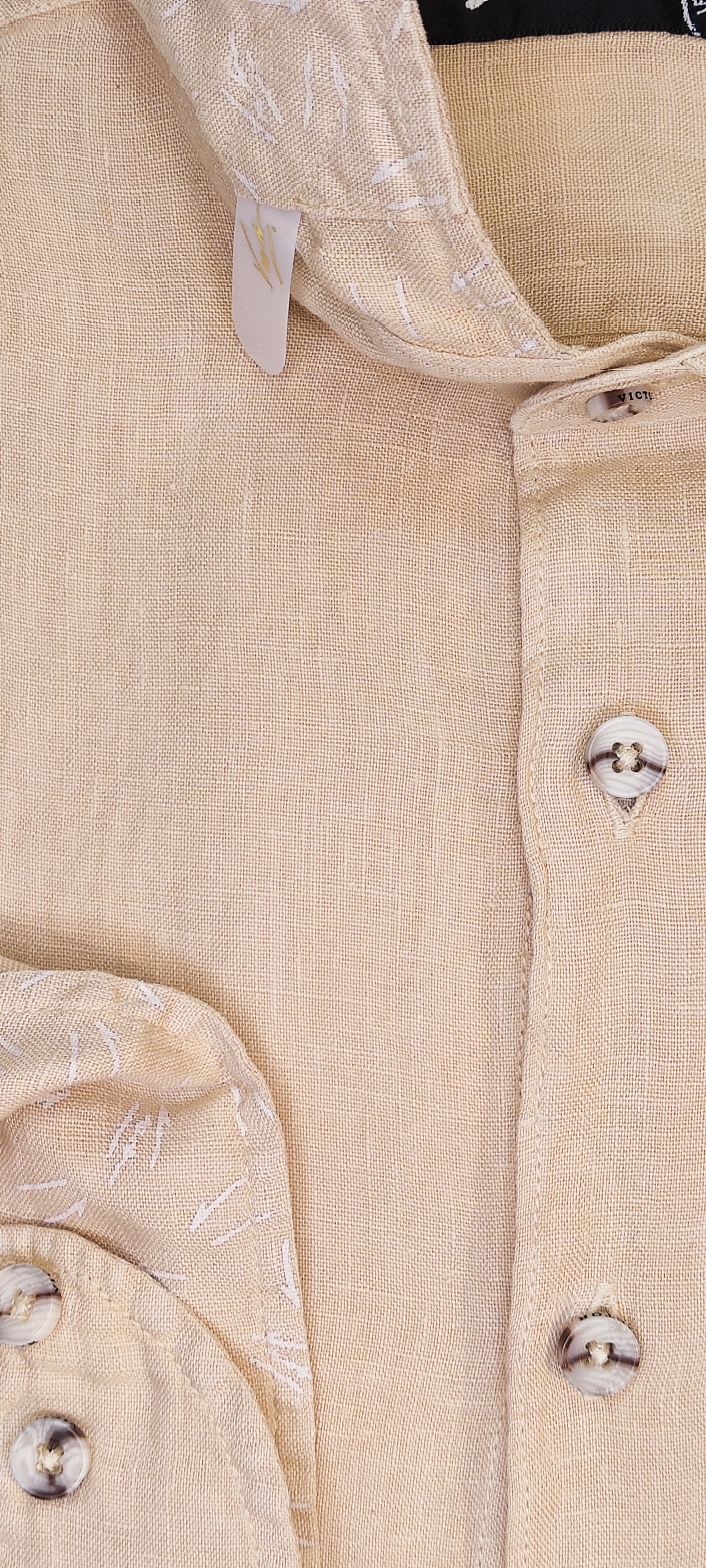 100% Linen, Logo Print inside Collar/Cuffs, Regular Fit