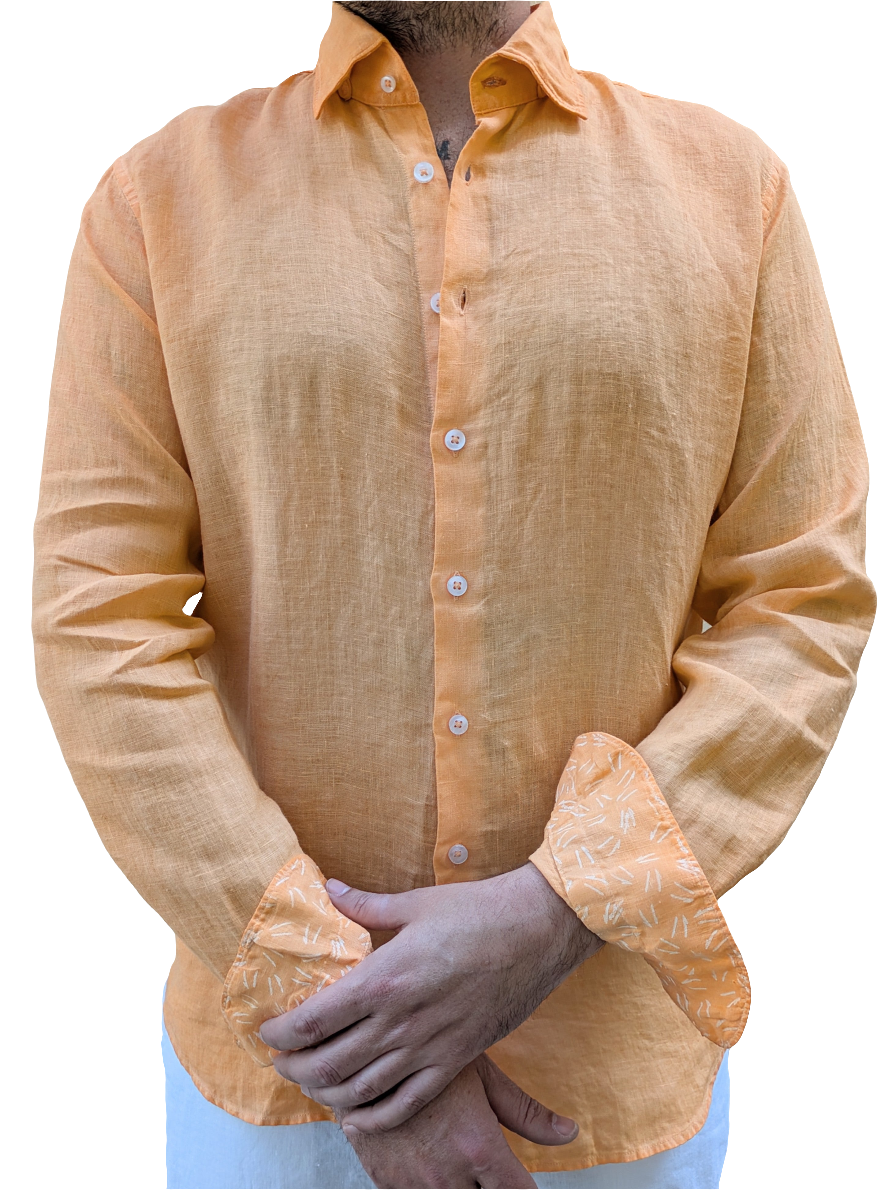 100% Linen, Logo Print inside Collar/Cuffs, Regular Fit